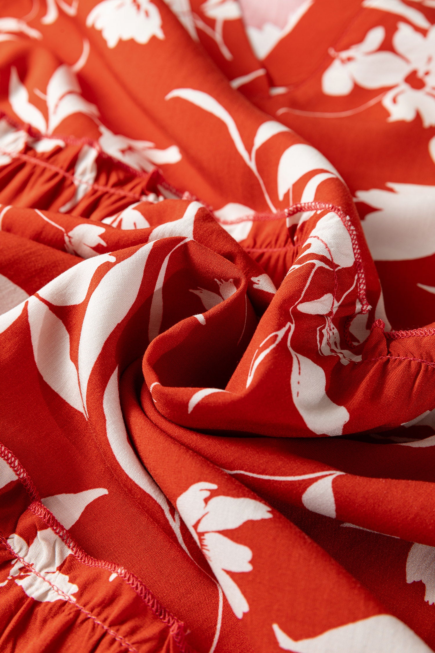 Blue Boho Floral Print Lettuce Trim 3/4 Sleeve Mini Dress