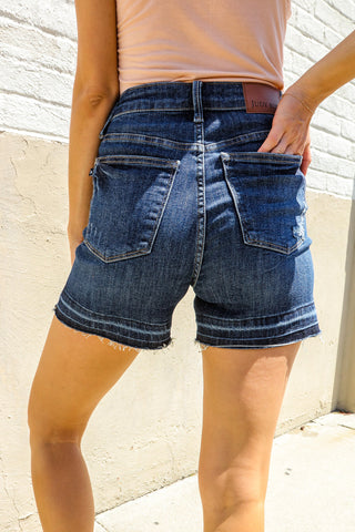 Faded Indigo Rolled Hem High Rise Denim Shorts