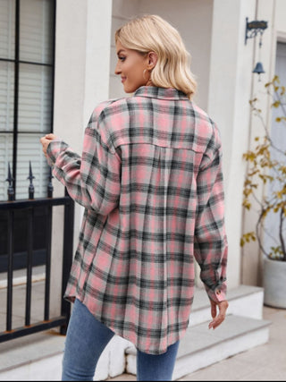 Mandy Pocketed Plaid Collared Neck Long Sleeve Shirt
