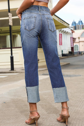 Sail Blue Raw Hem Unique Cuffs Straight High Rise Loose Jeans