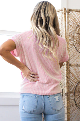 Phalaenopsis Ribbed Textured Knit Loose Fit Tee and Shorts Set