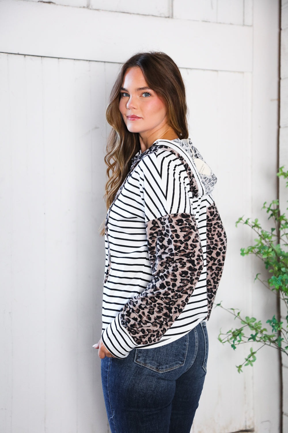 This hoodie perfectly combines our favorite animal and stripe prints. It is soft, stretchy and light weight. A great piece for running errands or casual nights out.