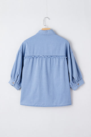 Myosotis Washed Drop Shoulder Bracelet Sleeve Chambray Shirt