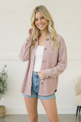 Light Pink Mixed Texture Knit Button V Neck Sweater Cardigan
